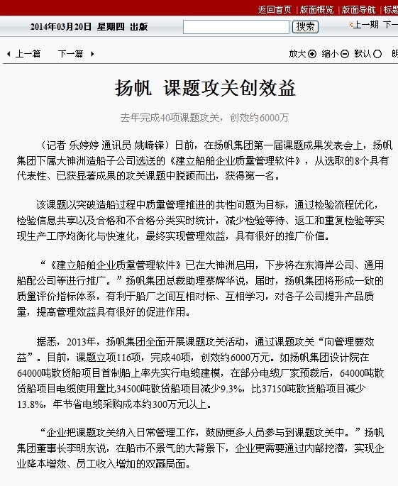 《今日普陀》2014年03月20日 揚帆課題攻關創效益